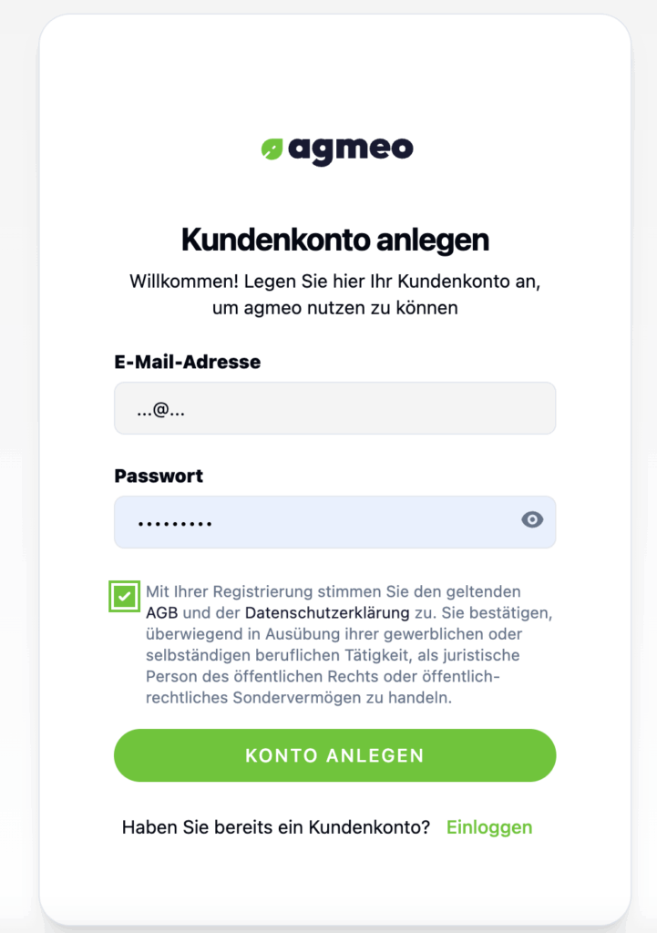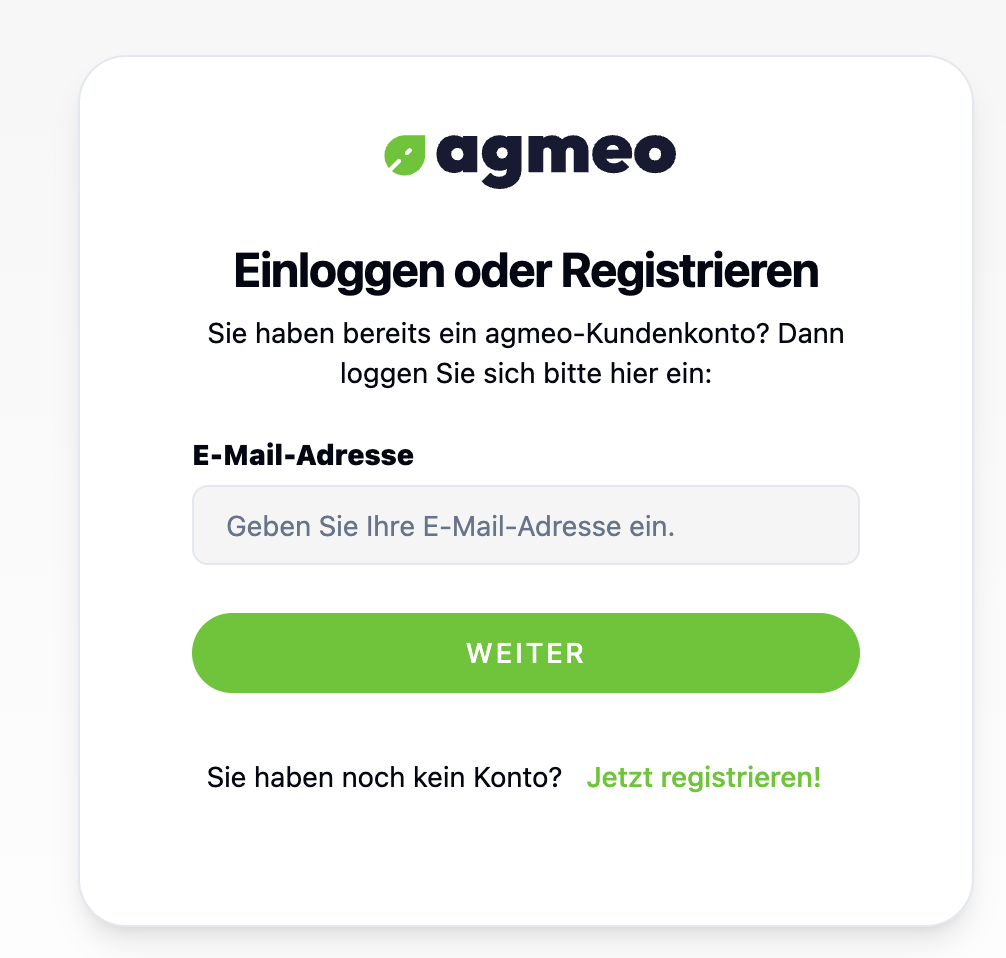 Beim ersten Besuch der agmeo-Plattform werden Sie zur Anmeldung aufgefordert: