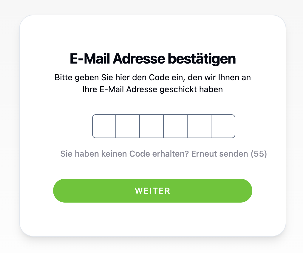 Kein Code erhalten? Sie können den Code nach 55 Sekunden erneut anfordern, indem Sie auf „Erneut senden“ klicken.